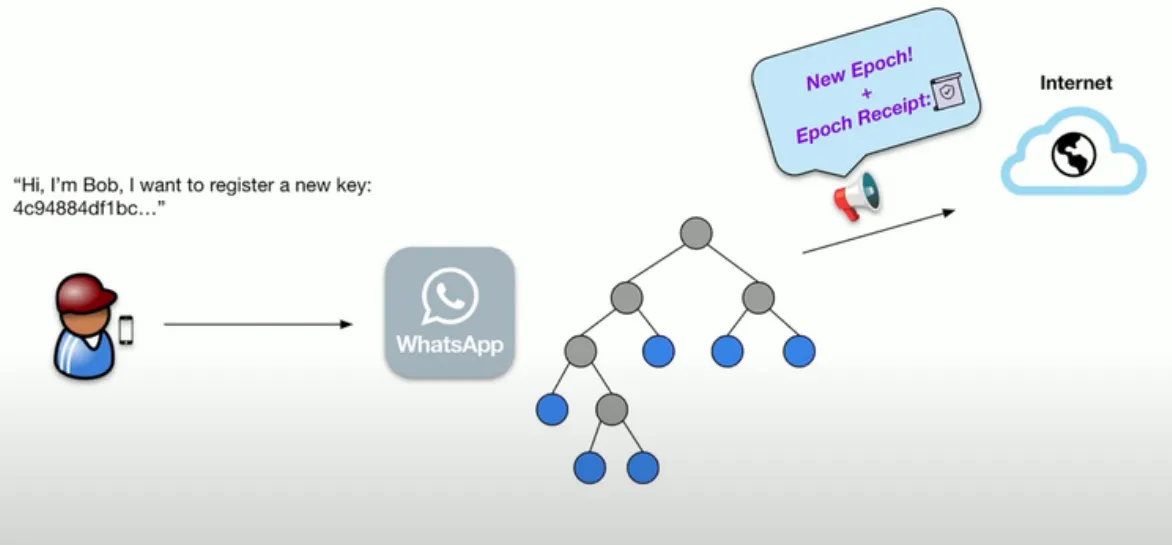 That’s the simplified flow. However, the Merkle Tree isn’t computed for each new key due to scalability issues. It’s done after specific time intervals (e.g. every 5 minutes). When the time is right, the server creates a snapshot of that epoch. That includes all the new keys added in the last batch.